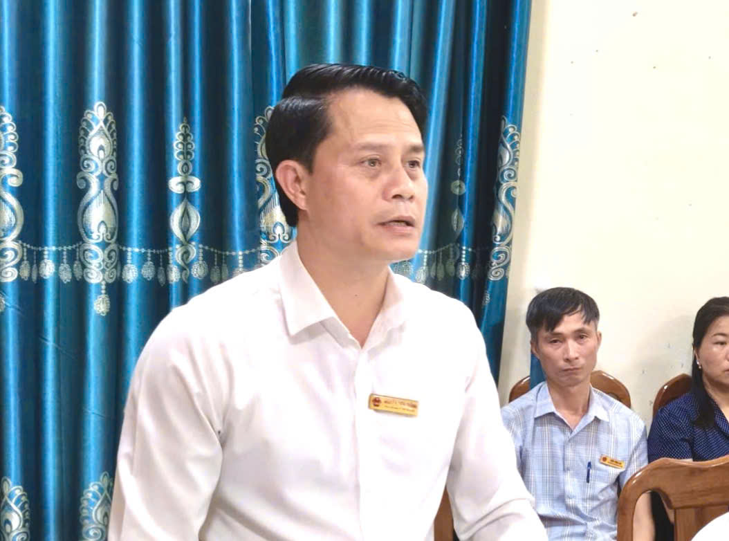 Đồng chí Nguyễn Tiến Thắng, Chủ tịch UBND xã phát biểu tại hội nghị.