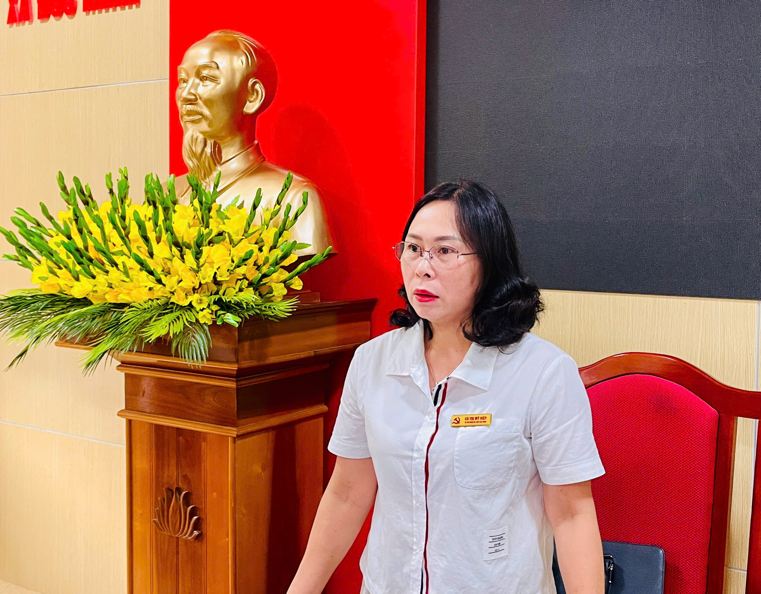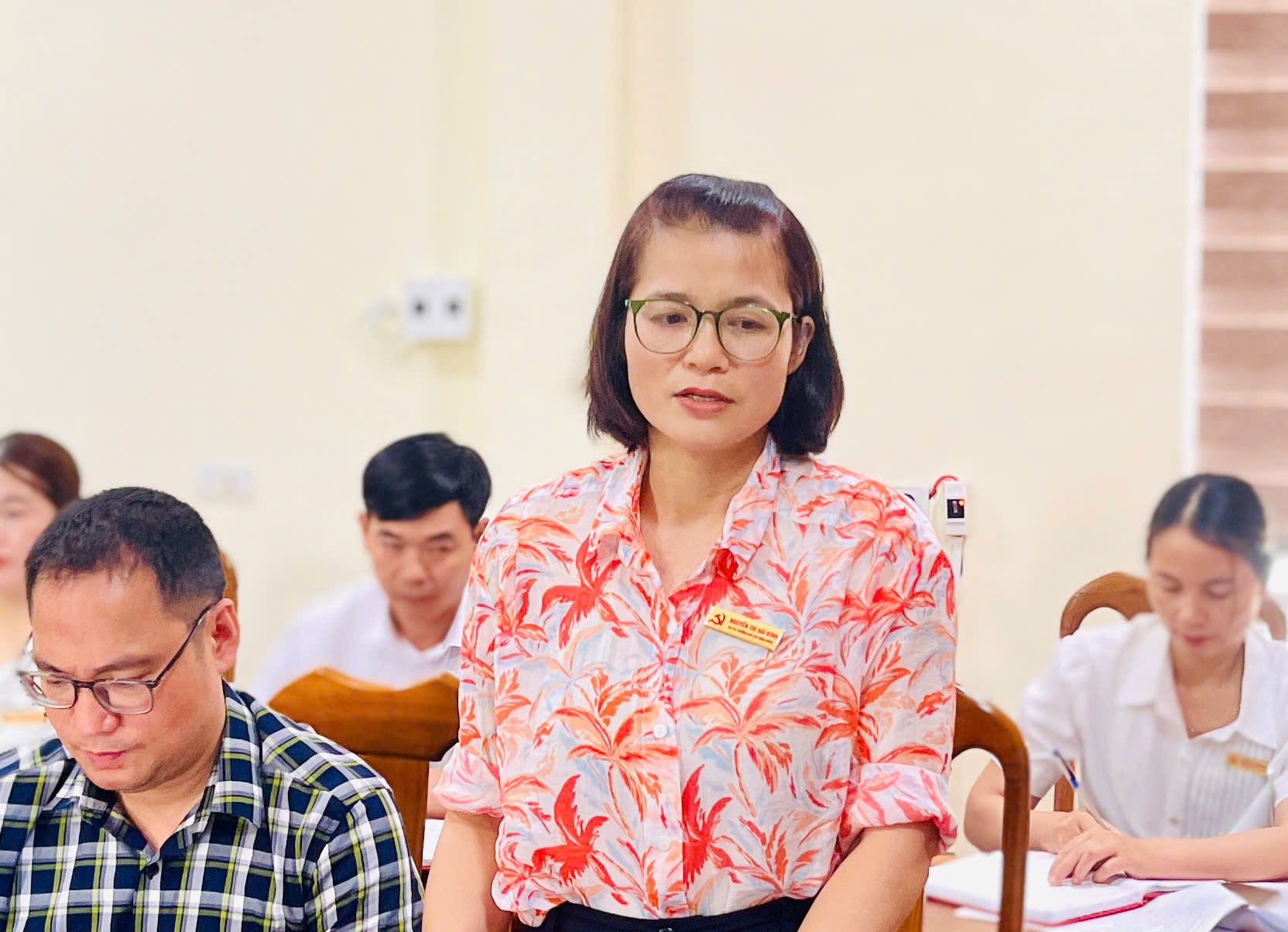Đồng chí Nguyễn Thị Hải Bình, Trưởng ban Xây dựng Đảng tham gia các ý kiến nhằm duy trì bền vững hiệu quả phong trào "ngày chủ nhật Nông thôn mới".