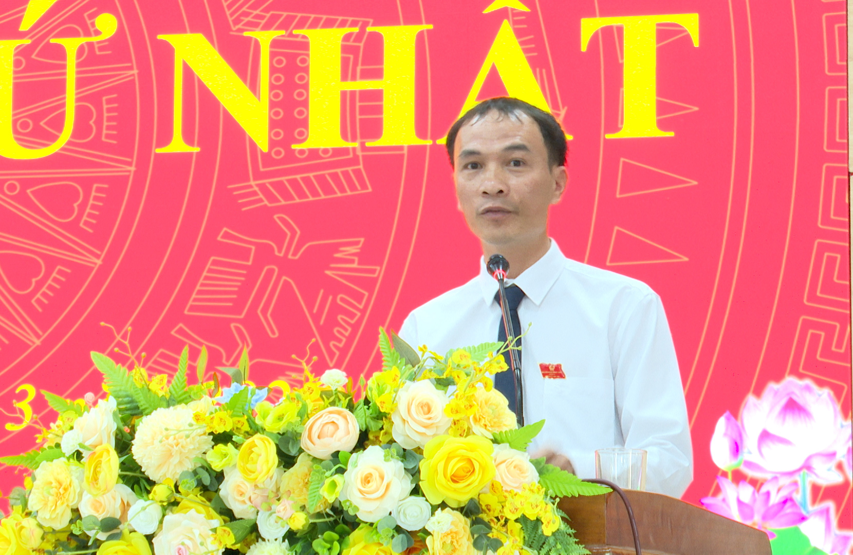 Ông Đậu Thanh Tịnh - Phó Chủ tịch UBND xã báo cáo kết quả bầu cử đại biểu Quốc hội và HĐND các cấp nhiệm kỳ 2026-2031 và kết quả xác nhận tư cách đại biểu HĐND xã khoá II.